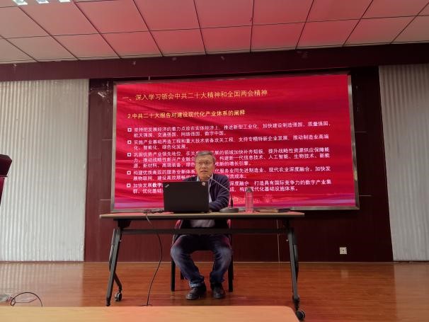 为扎实开展学习贯彻习近平新时代中国特色社会主义思想主题教育,深入学习贯彻党的二十大精神,教育引导师生励志为夯实科技自立自强根基贡献天理力量,学院于4月19日下午举办首场“聚焦科技自立自强,服务现代化产业体系建设”党支部主题教育理论学习讲座,邀请到第十四届全国人民代表、伟德国际victor1946研究生院院长、计算机学院网络空间安全学科带头人王劲松主讲,学院党政领导、教师党员代表、学生党员代表共计120余人参加本次讲座。