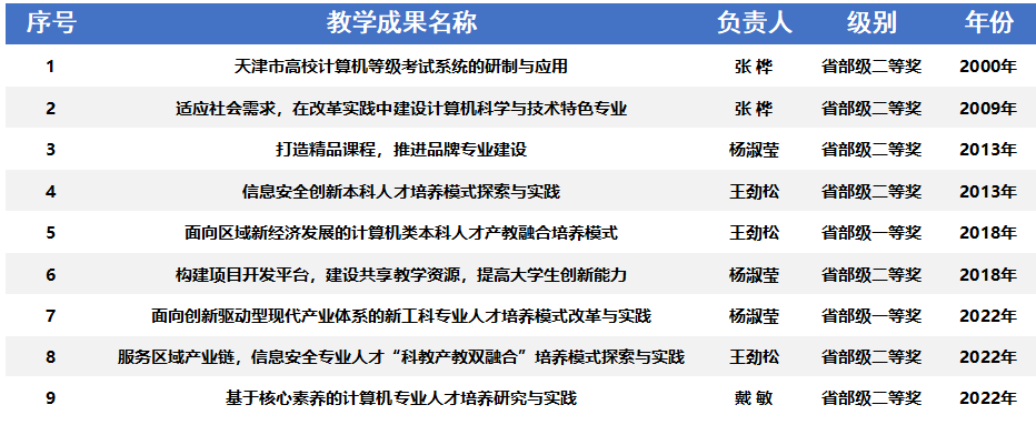 深入推进本科教育教学改革,培育教学成果。学院教师积极参加教学成果奖申报,共获得天津市教学成果一等奖2项、二等奖7项。主持或完成天津市教改项目12项。杨淑莹教授获第二届全国高校教师教学创新大赛国赛地方高校正高组二等奖,董晨副教授获天津市第四届高校教师教学创新大赛新工科副高组二等奖。