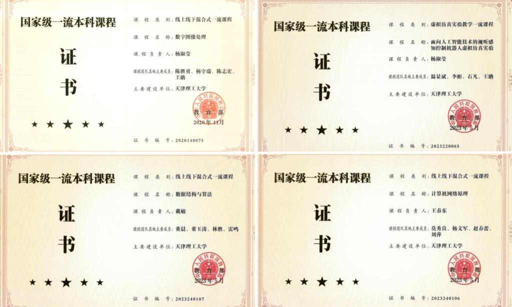 学院深入贯彻落实立德树人根本任务,以课程建设为抓手,推动教育教学高质量发展。学院将思政教育融入专业课程,构建了“课程思政”全覆盖体系,深化课程建设,为培养德才兼备的高素质人才奠定坚实基础。学院获批天津市高校课程思政示范课程(高级网络体系结构)1门、学校“课程思政”课改专项2项(计算思维与程序设计基础、数据库系统)、全国高等院校计算机基础教育委员会计算机基础教育教学项目1项(Python 序设计课程思政探索与研究);2023年《习近平关于科技创新的重要论述》获批校级课程思政示范课程。同时,学院积极推进高校课程思政优秀教材建设,《模式识别与智能计算-Matlab技术实现》入选2021年天津市高校课程思政优秀教材、《图像处理与深度学习技术应用》2024年获批首批天津市级高等学校精品教材建设项目。