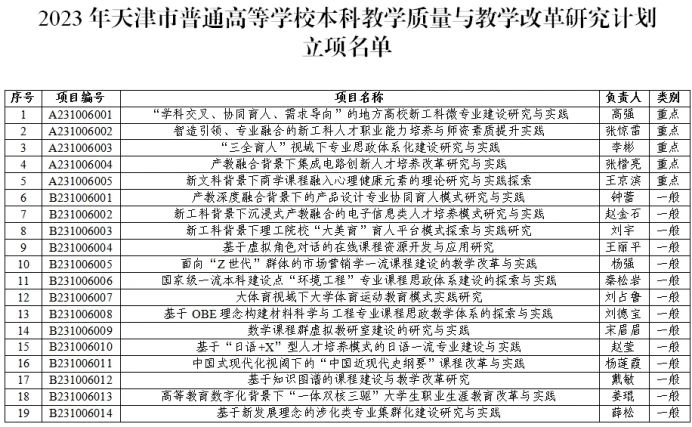 近日,天津市教育委员会印发《市教委关于公布2023年天津市普通高等学校本科教学质量与教学改革研究计划项目立项结果的通知》(津教政办〔2023〕139号),我院戴敏教授所申报的项目《基于知识图谱的...2023-10-14